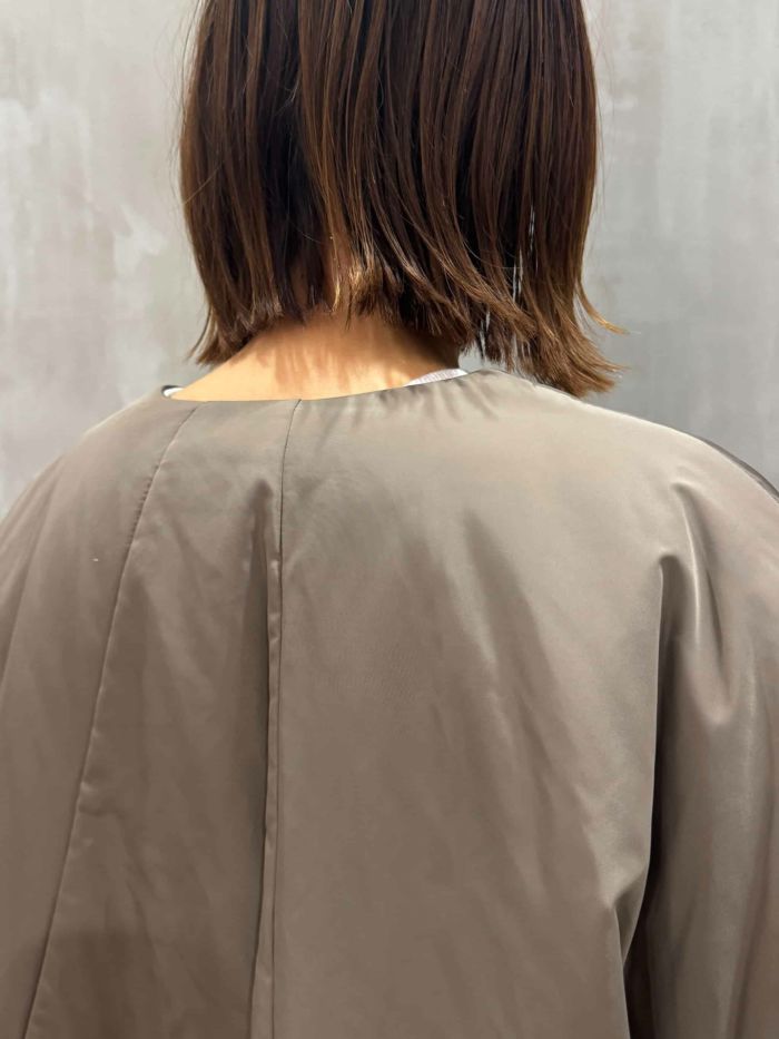 このコートは、裏地に裾リブがついていて冷気の入りにくい二重構造になっております。