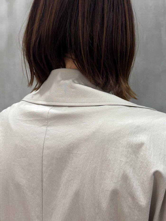 また、オーバーサイズシルエットのため、中にニットやスウェットなどを重ねても窮屈感がなく、気温の変化が激しい季節の変わり目にもぴったり。秋口から春先まで長く活躍する万能なアウターです。