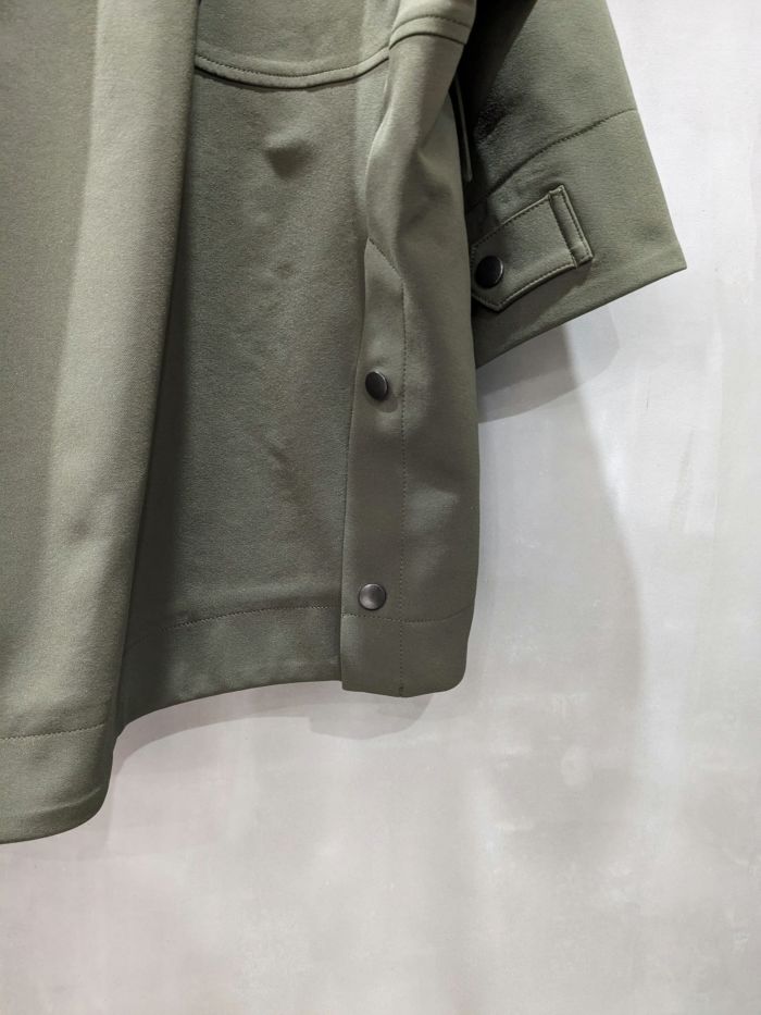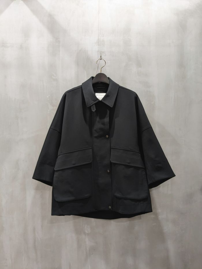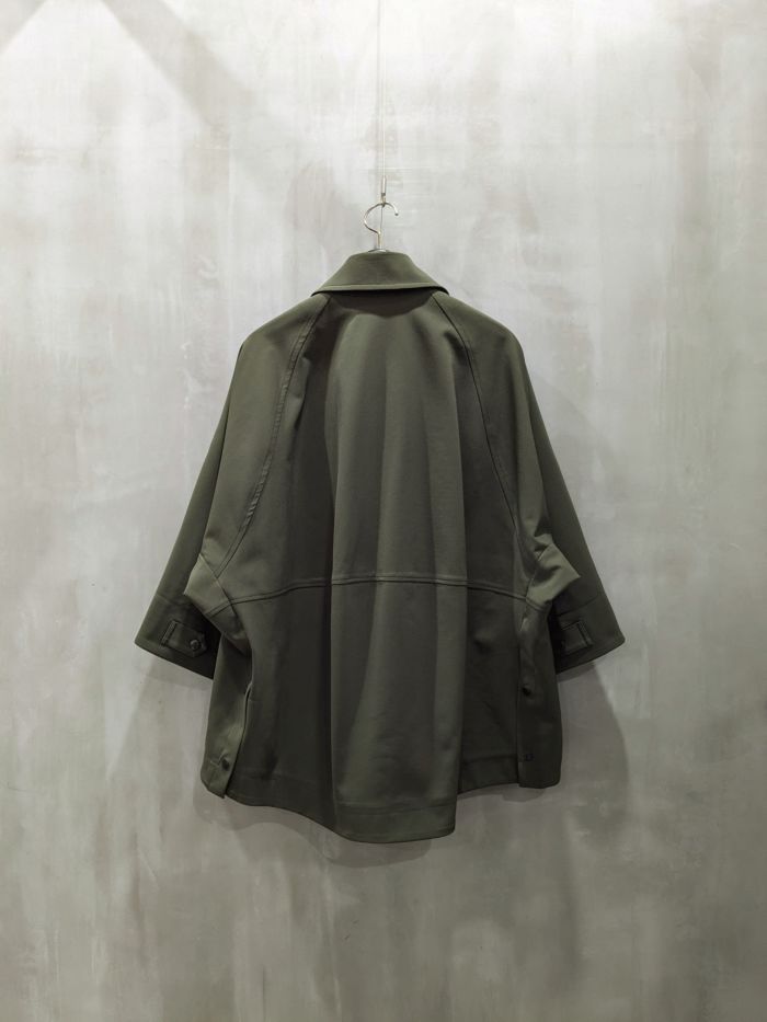 このストレッチコートは、ワイドなボックスシルエットが特徴で、あらゆる体型にフィットします。襟を立てての着用も可能で、スタイリングのバリエーションが広がります。袖下のマチがとても広く、4wayストレッチ素材を使用しているため、動きやすさと快適さを両立。