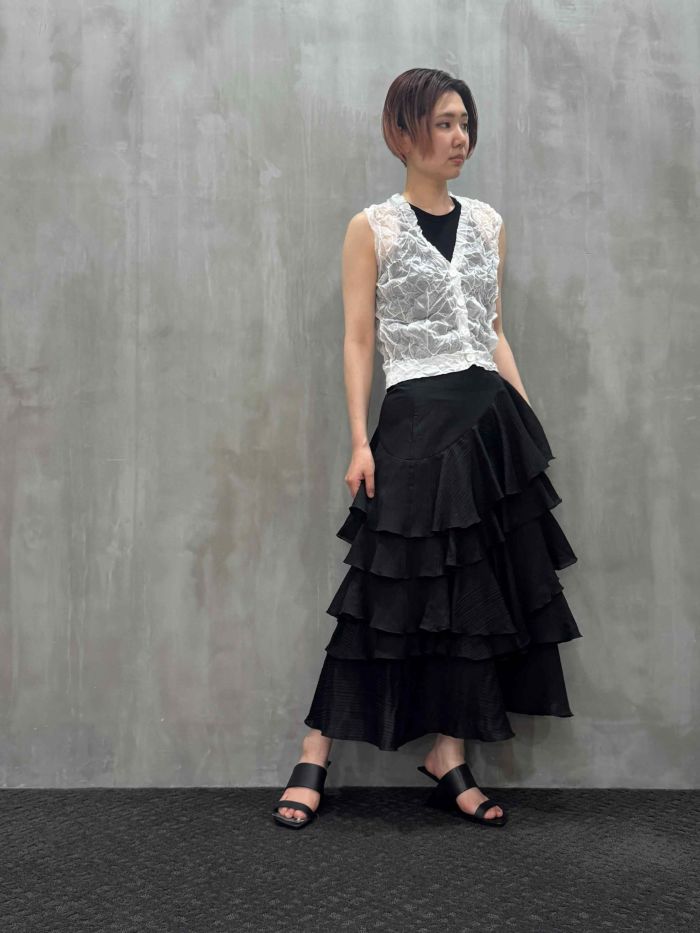 くしゅっとしたリンクル加工を施した存在感あるジレ。