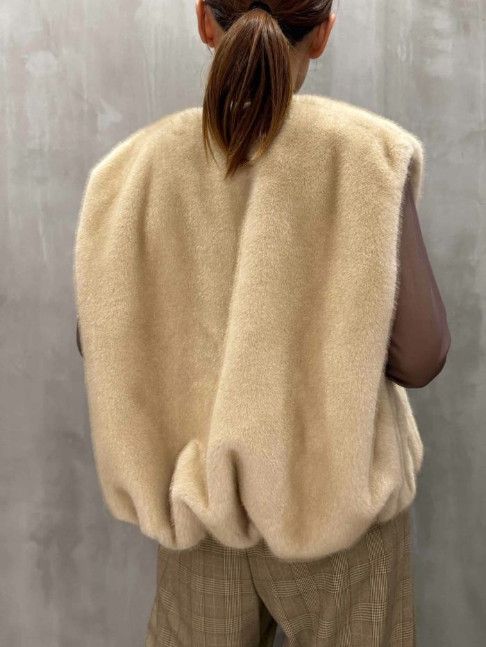 毛足の長い、肌触りの優しいファーを使用したショートジレ。