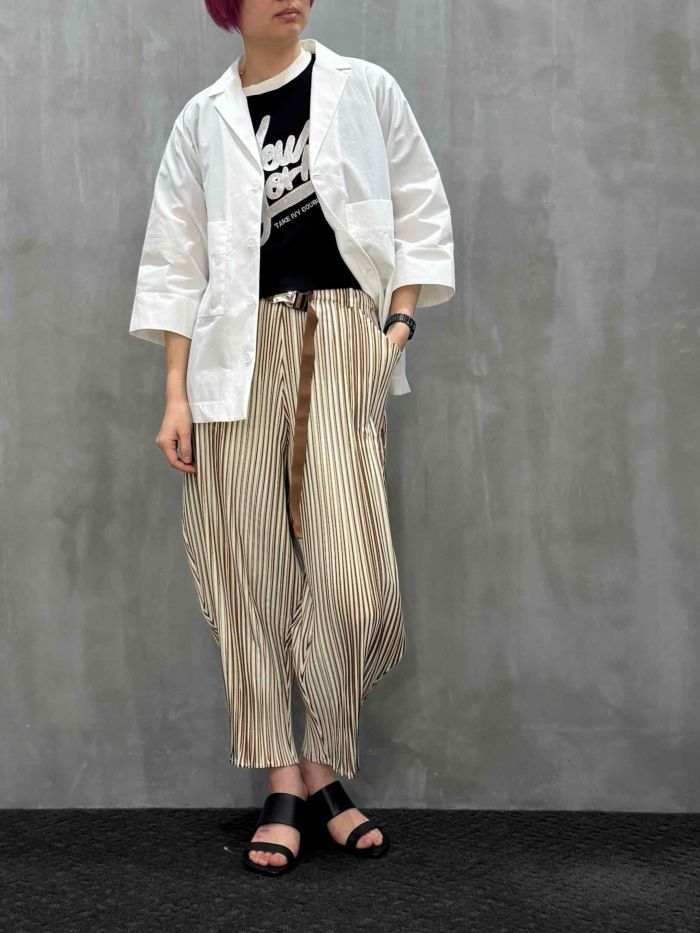 スタッフM:サイズ2着用→薄手の生地なのにヒップラインが気にならないシルエットで着やすいです。
