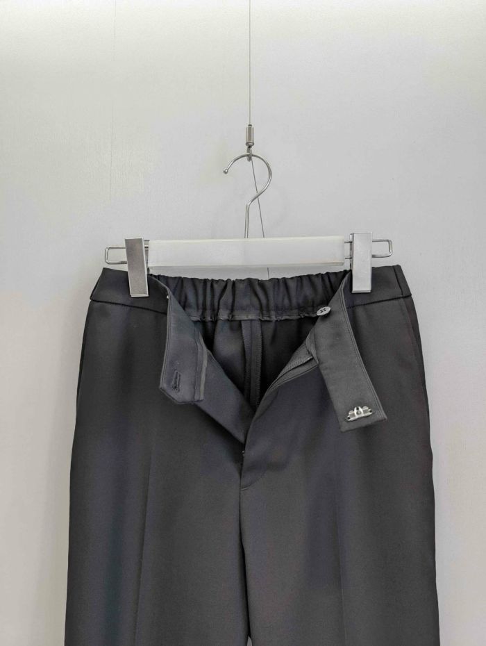 上質なウール100%素材を使用したテーパードパンツ。シンプルでありながら洗練されたシルエットが、大人のスタイリングを格上げします。