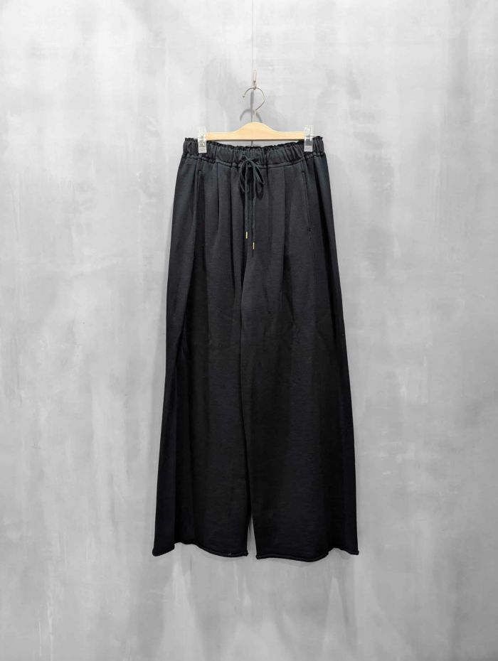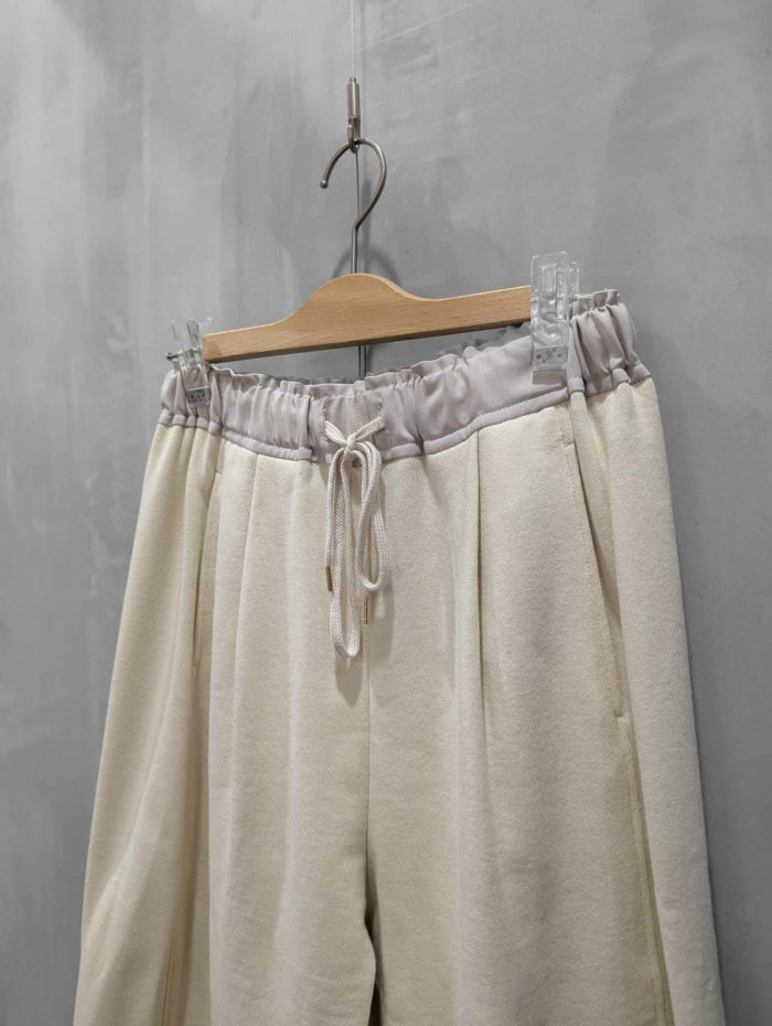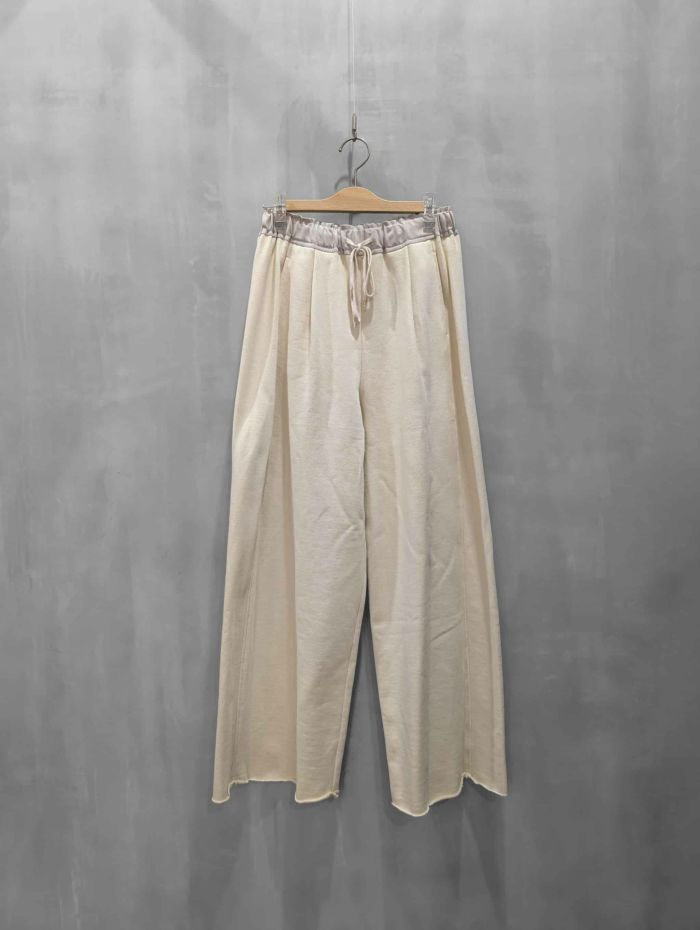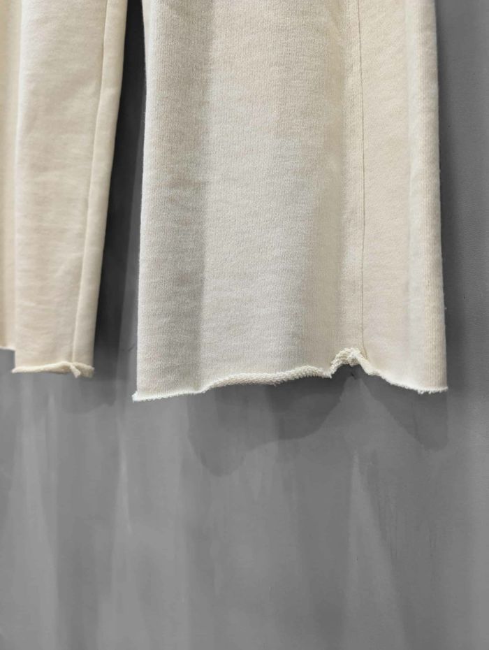 国内で丁寧に編み上げた裏毛素材を使用した、trois(トロワ)のカーブパンツ。柔らかさと膨らみのある生地は肌当たりが良く、リラックス感のある着心地が魅力です。程よいゆとりを持たせたカーブシルエットは体型を拾いにくく、動きやすさとこなれ感を両立。裾を断ち切り仕様にすることで自然なカーリングが生まれ、シンプルな中に抜け感をプラスしています。
