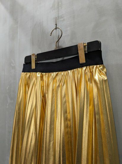 華やかな存在感と軽やかな着心地を兼ね備えた、ゴールドカラーのプリーツスカートです。
