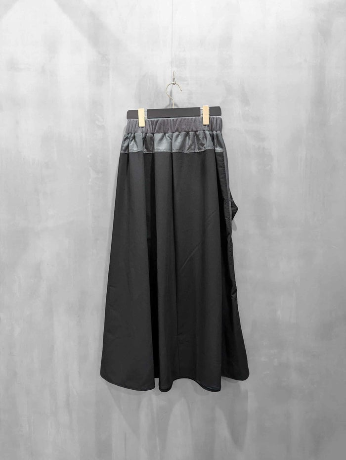 レイヤード風デザインが一枚でスタイルを完成させる、存在感のあるモードスカートです。