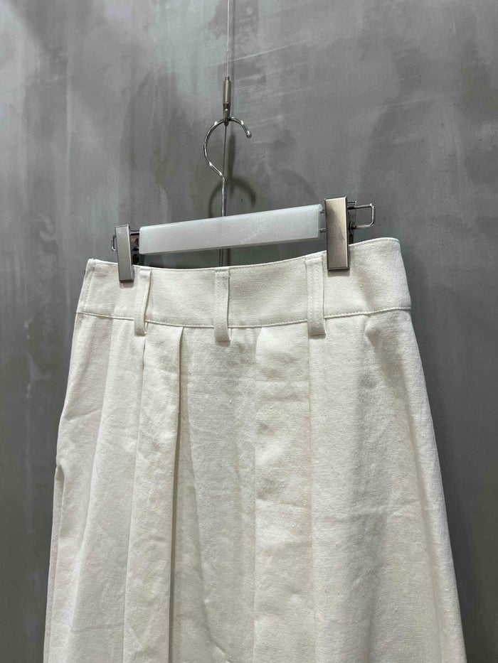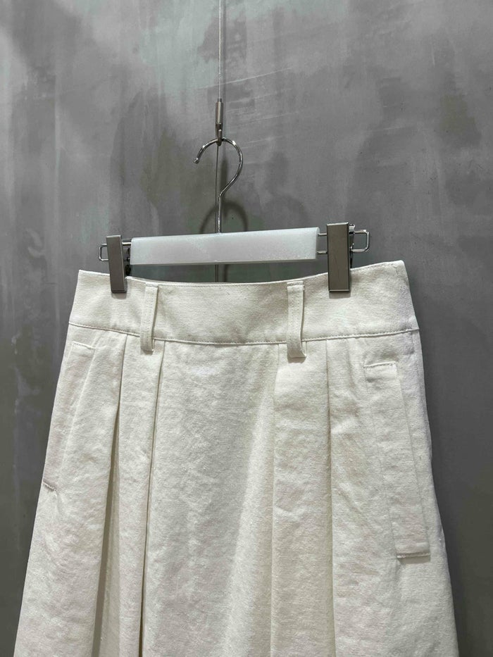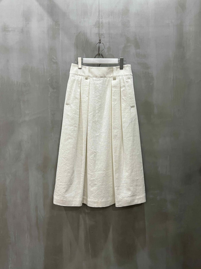 麻混素材の程よい張り感がかわいいフレアスカート 。