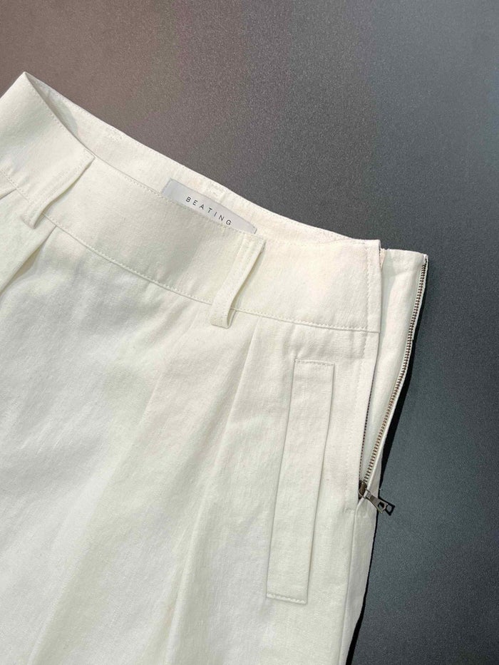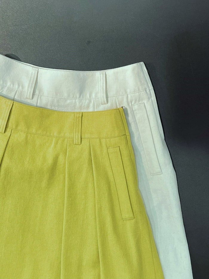 前後にタックが入っているので広がり過ぎず、トップスをインしても綺麗に見えるウエスト周りになっています。
