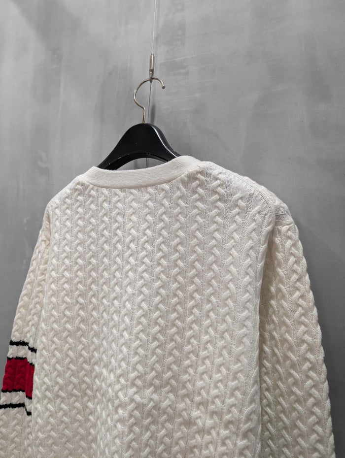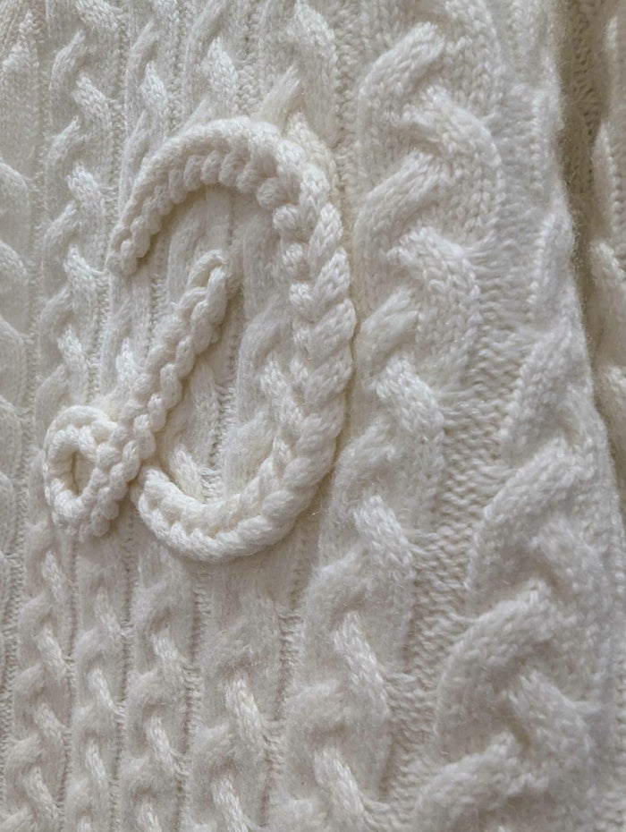 ケーブル編みの柄がヴィンテージライクな表情を演出。