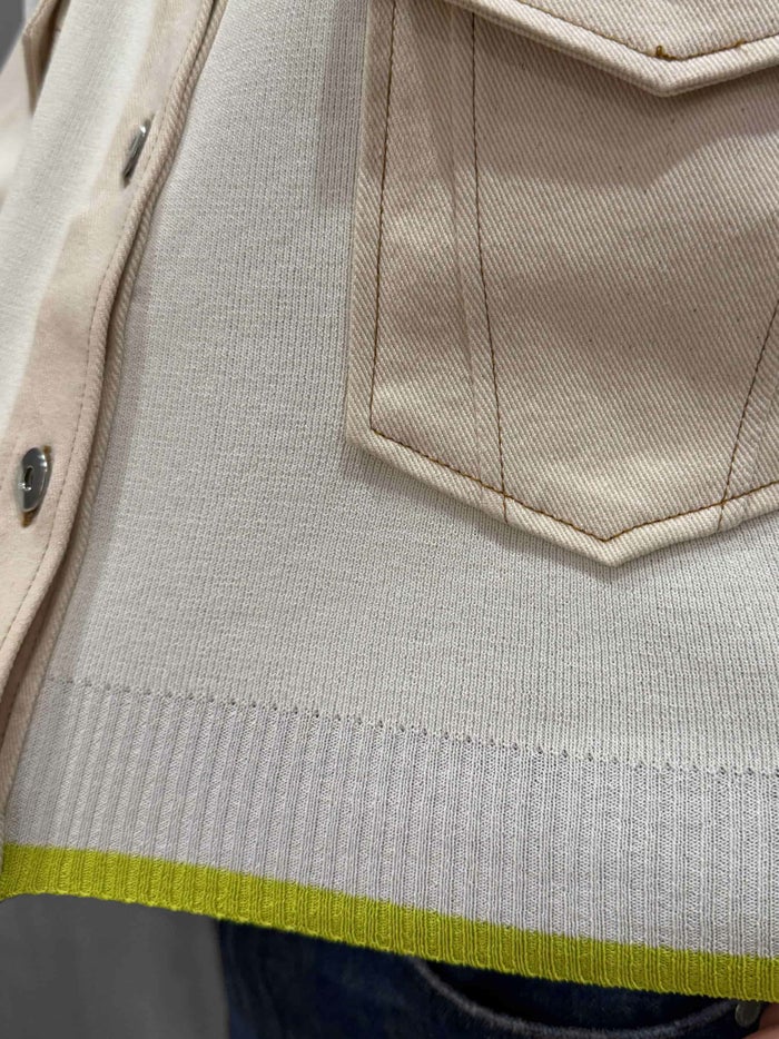 前立てやポケット、後身頃にデニム(ツイル)を切り替えたデザインは、Gジャンとカーディガンを融合させたような存在感があり、羽織るだけでスタイリングが決まります。