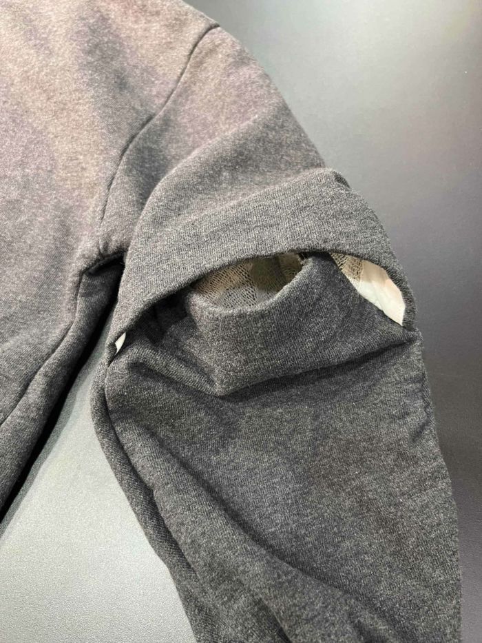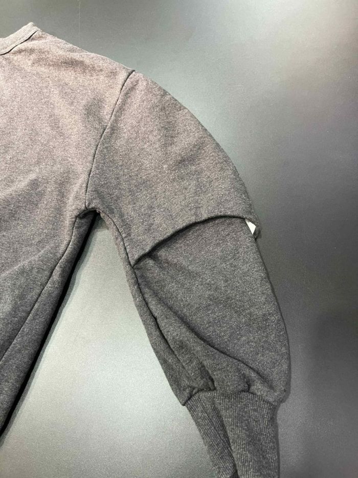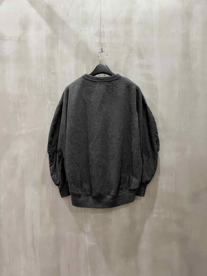前袖にスラッシュがあり、そこから手を出し着こなしを楽しむことができます。春の軽やかさを演出し木尾梨を楽しめるアイテムです。ハイクオリティのスウェットをお探しの方にオススメの商品です。