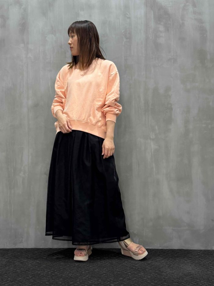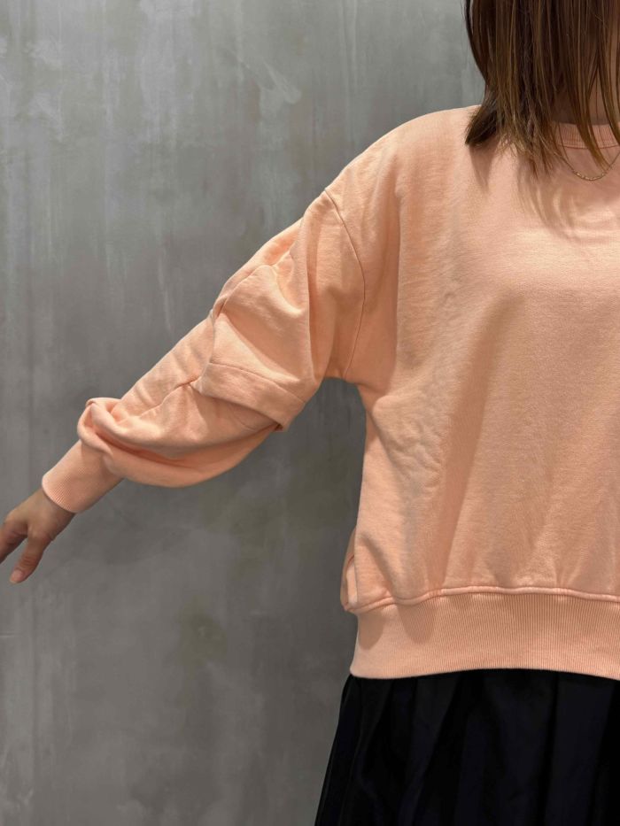 袖に丸みを持たせたスウェットトップス。シルエットにデザイン性を持たせているのでラフになりすぎません。セットアップコーディネートでは、一味違った大人のリラックスモードを楽しめます。