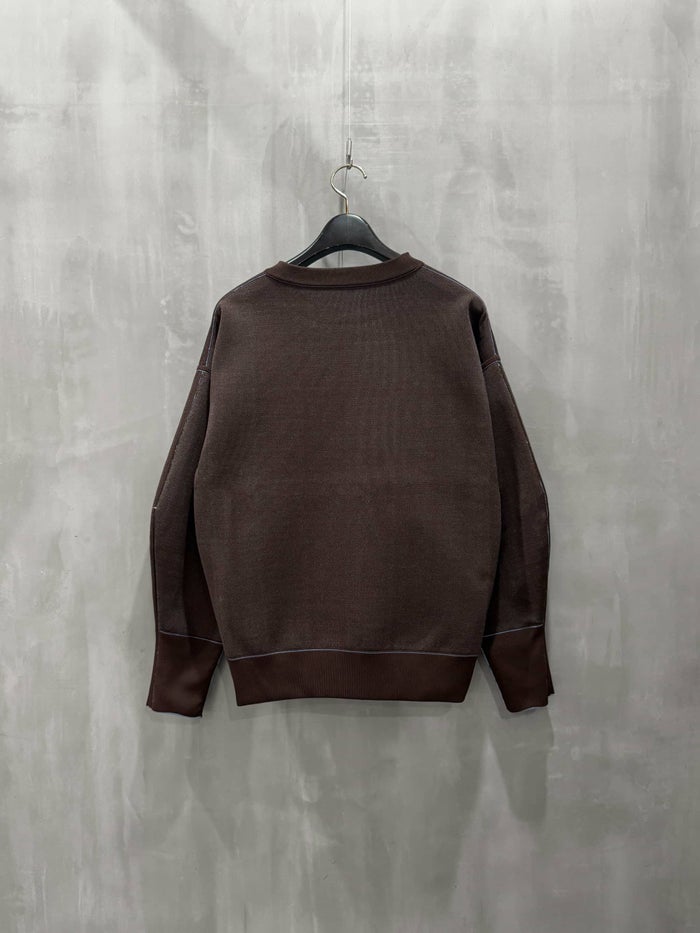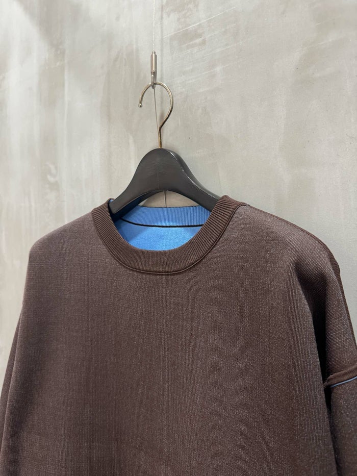 リバーシブル仕様で2通りの着こなしが楽しめるバイカラーニット。程よい光沢と滑らかな肌触りが特徴のナイロン糸を使用し、細く繊細な糸をしっかりと編み上げることで、厚みと弾力性を兼ね備えた上質な風合いに仕上げました。