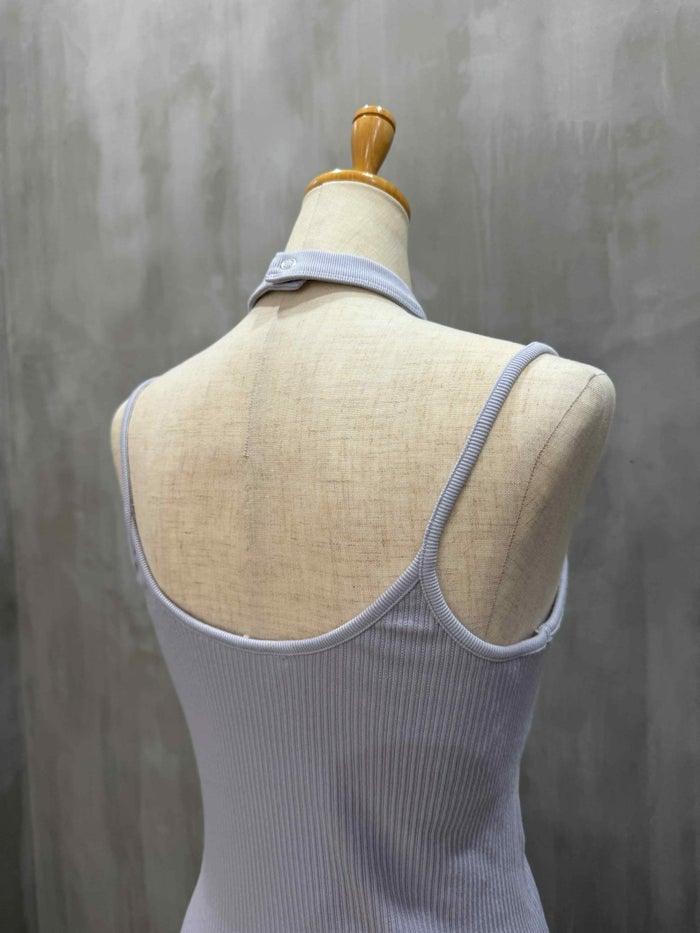 上下をひっくり返すことで、ホルターネックスタイルとアメリカンスリーブタンク、2つの表情を楽しめるユニークなデザインです。