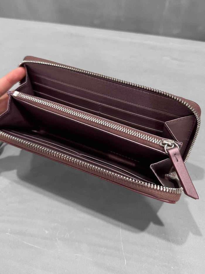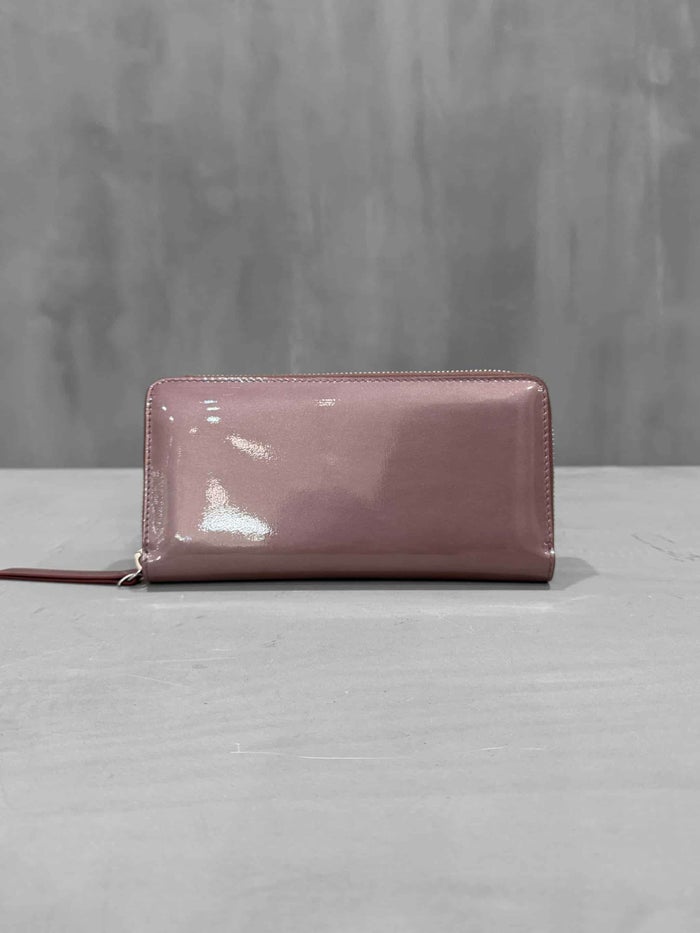 光沢のあるパテントレザー製のジップアラウンドウォレット。