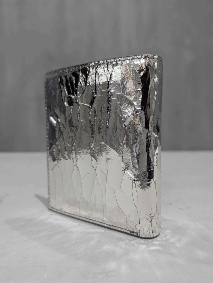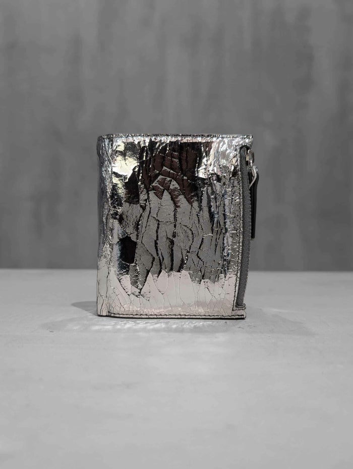 メゾンを象徴する“ブロークンミラー”仕上げが施された、三つ折りタイプのコンパクトウォレット。