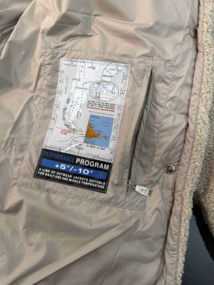 飛び出してしまったダウンは引っ張らず、内側から引き戻すか表地を軽くつまんで押し戻してください。