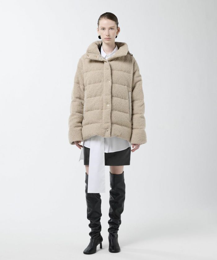 全面にあしらったエコボアの立体感とミニマルなディテールが、大人のリラックススタイルを演出します。