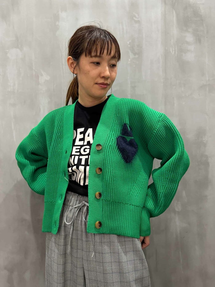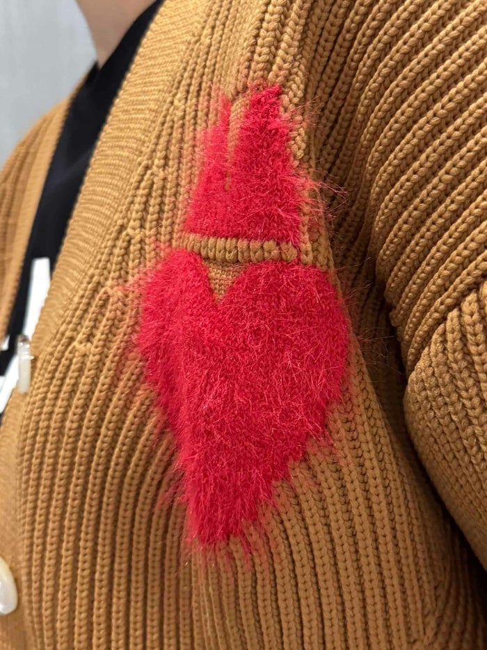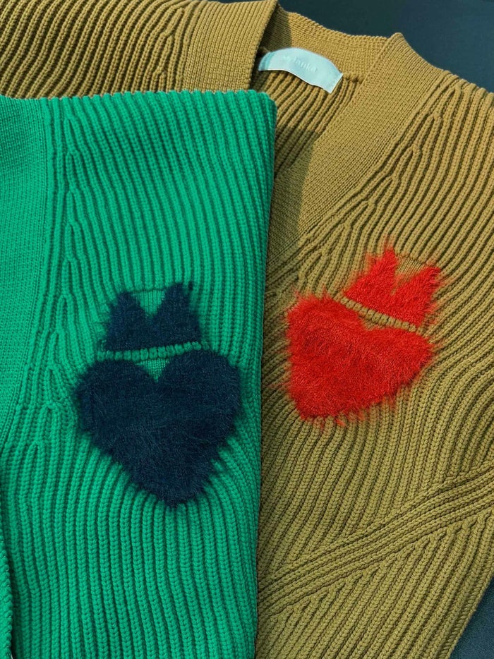 左胸には起毛糸でふわふわとしたMylankaハートモチーフ付きです。