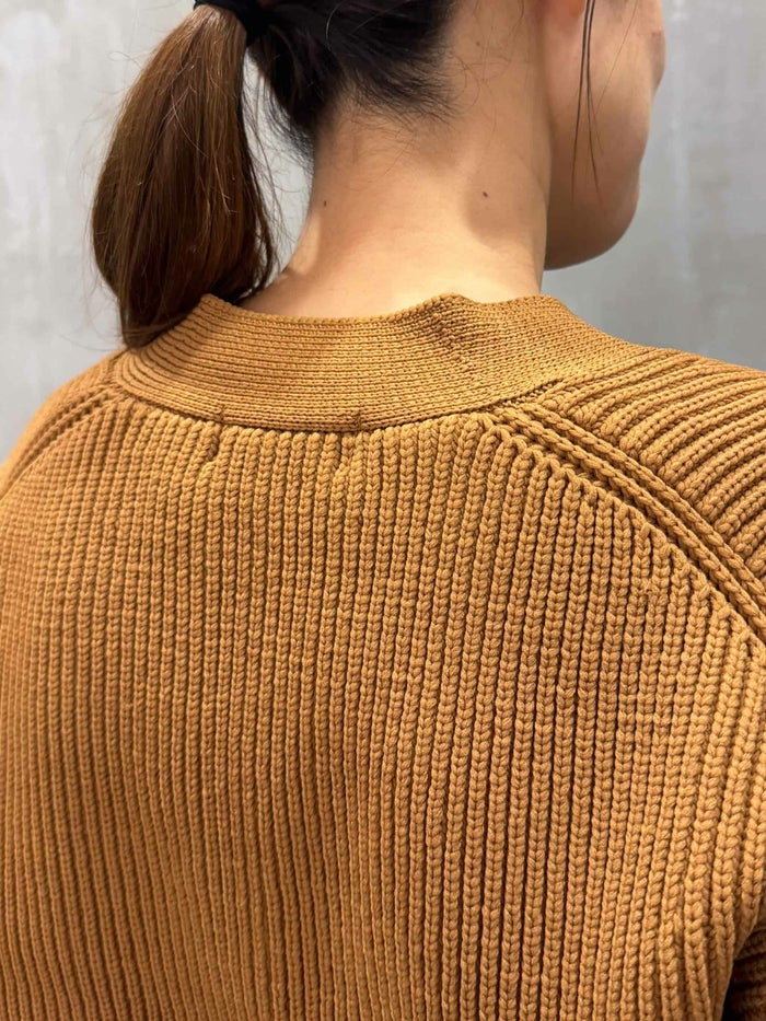 厚みとハリ感があるのに軽い気心地のニットカーディガン。