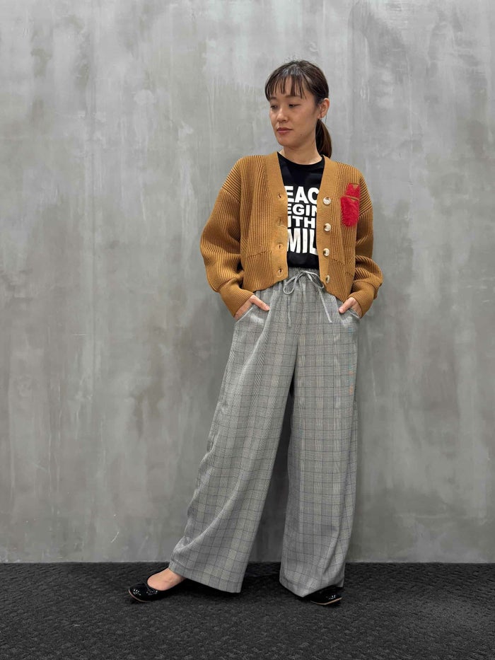 シンプルなボトムと合わせるだけで着映え感たっぷり。