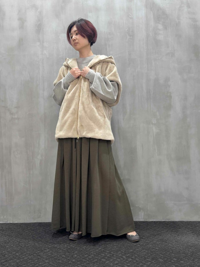 フード付きのデザインがカジュアルな要素をプラスし、スウェットやカットソーに重ねてデイリーに、ワンピースやシャツに合わせてモードに着こなすなど、幅広いコーディネートが可能。ジップアップ仕様で着脱もスムーズ、軽やかなポリエステル素材なので、秋冬シーズンを通して快適にご着用いただけます。