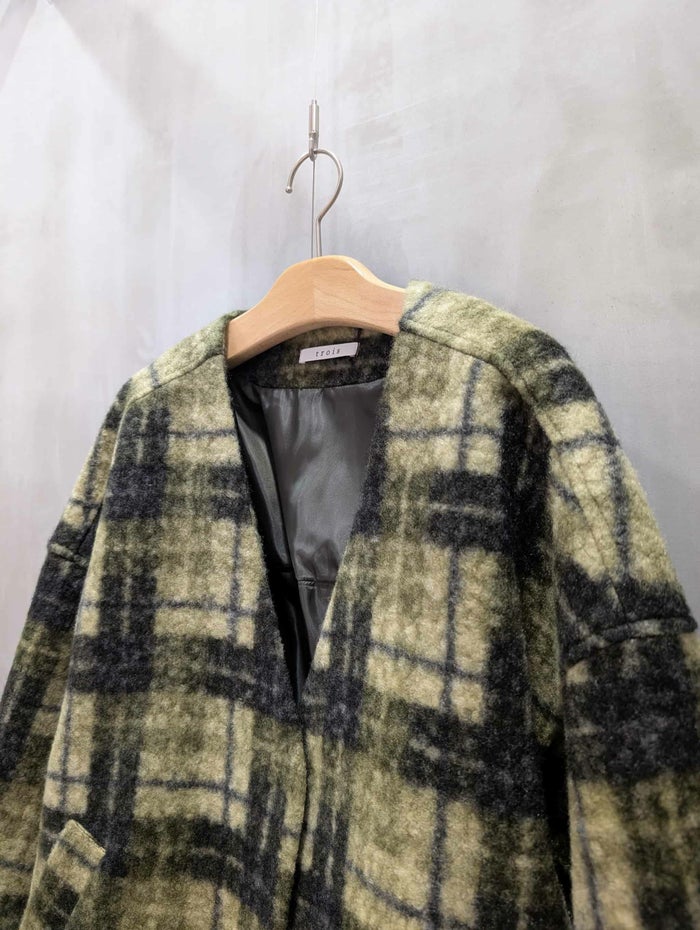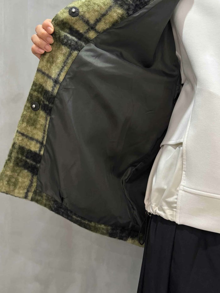 trois マドラスチェック ボアブルゾン