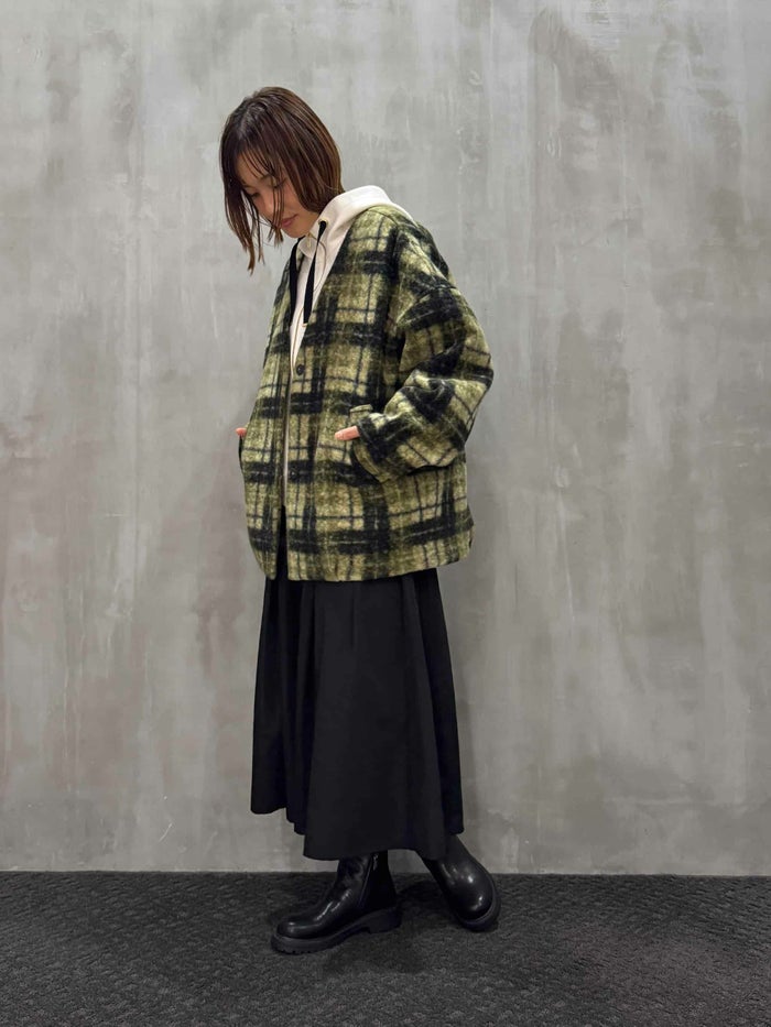 クラシックなマドラスチェックがスタイリングのアクセントになり、お尻まですっぽり隠れるハーフ丈でボトムスとのバランスも取りやすく着まわし抜群◎