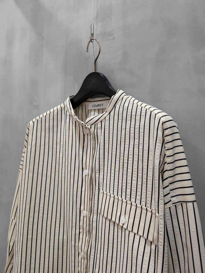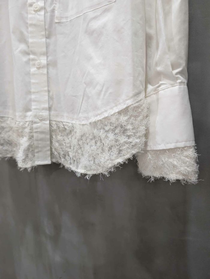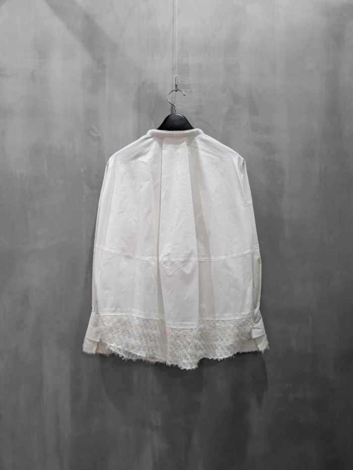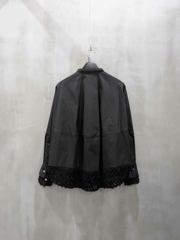 レイヤードになった袖と裾の切り替えがポイントのバックボリュームシャツ。