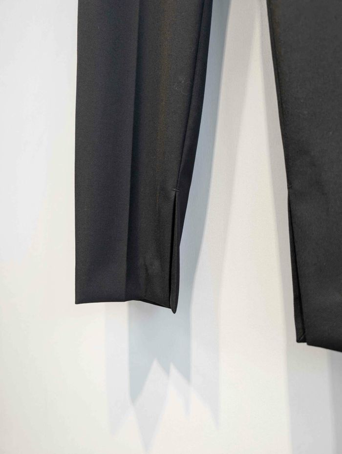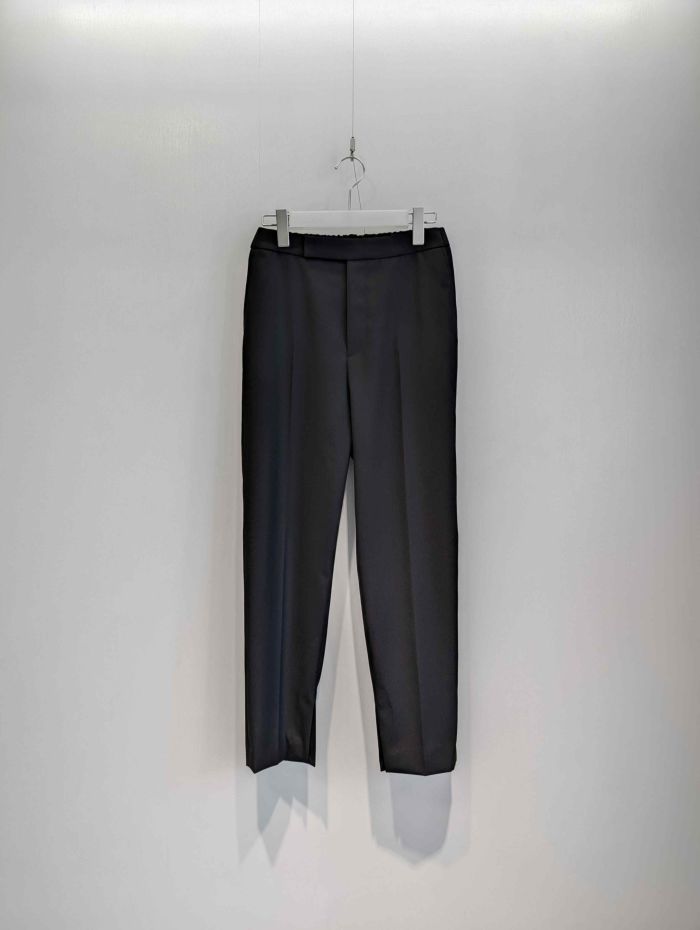 裾に向かって程よく細くなるテーパードシルエットと裾のスリットで、脚のラインを美しく見せながら動きやすさも叶えてくれるデザイン。上品な光沢感と柔らかな風合いのウール素材が、秋冬のスタイルに暖かさと品格をプラスします。