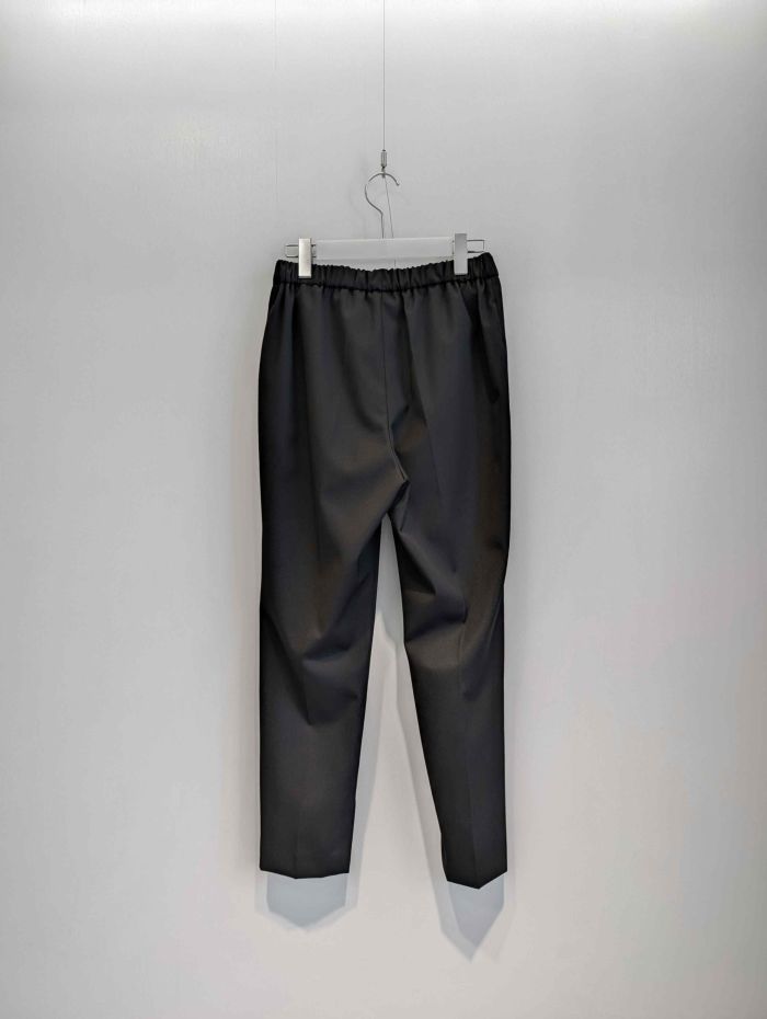 上質なウール100%素材を使用したテーパードパンツ。シンプルでありながら洗練されたシルエットが、大人のスタイリングを格上げします。