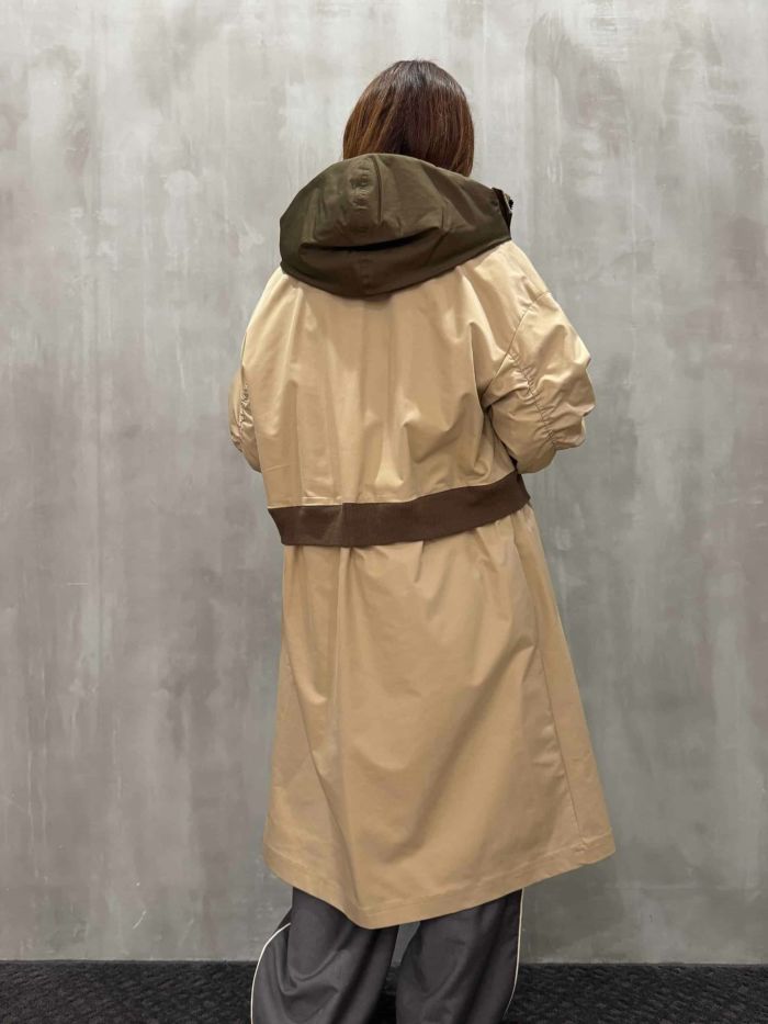 撥水性のあるマットでしなやかな伸びのあるポリエステル素材を使用することで、スポーティーになりがちなユーティリティーコートも柔らかな表情を醸し上品な印象です。