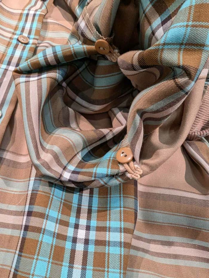 袖の内側には長さ調節に役立つボタンが付き、袖口はリブで袖落ちが気にならないのも嬉しいポイントです。