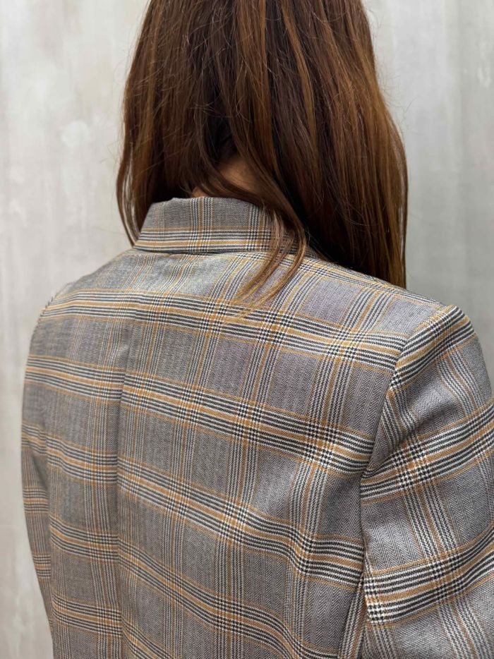 ・メンズっぽいダブルジャケットでトレンド感を演出。