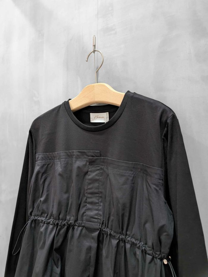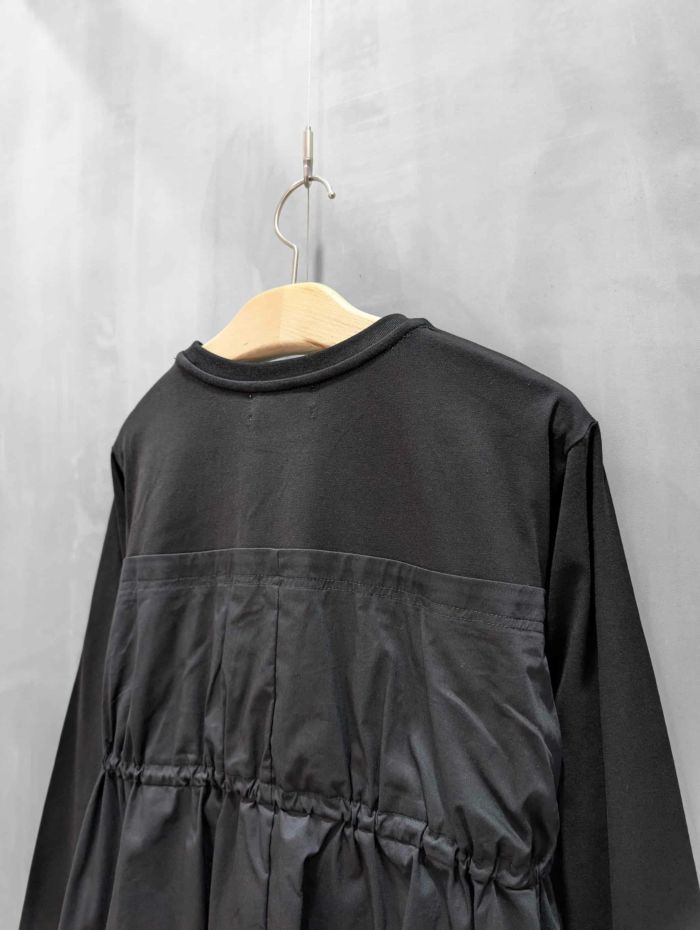・カットソーの気軽さと布帛の立体的な形が絶妙。