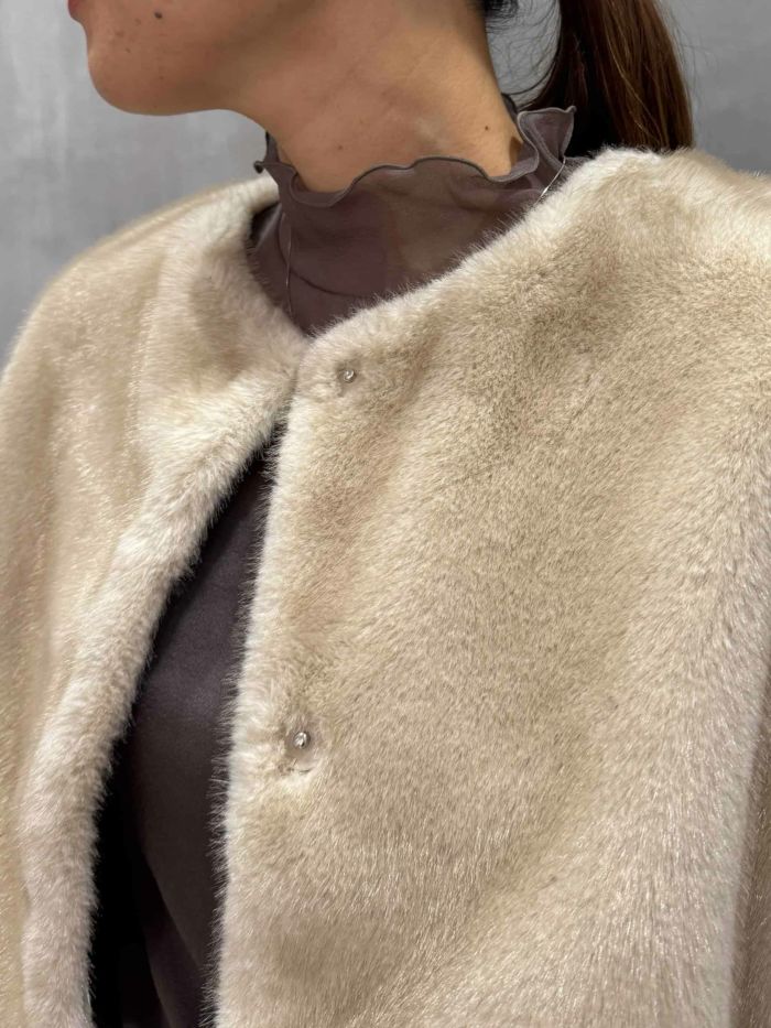 毛足の長い、肌触りの優しいファーを使用したショートジレ。