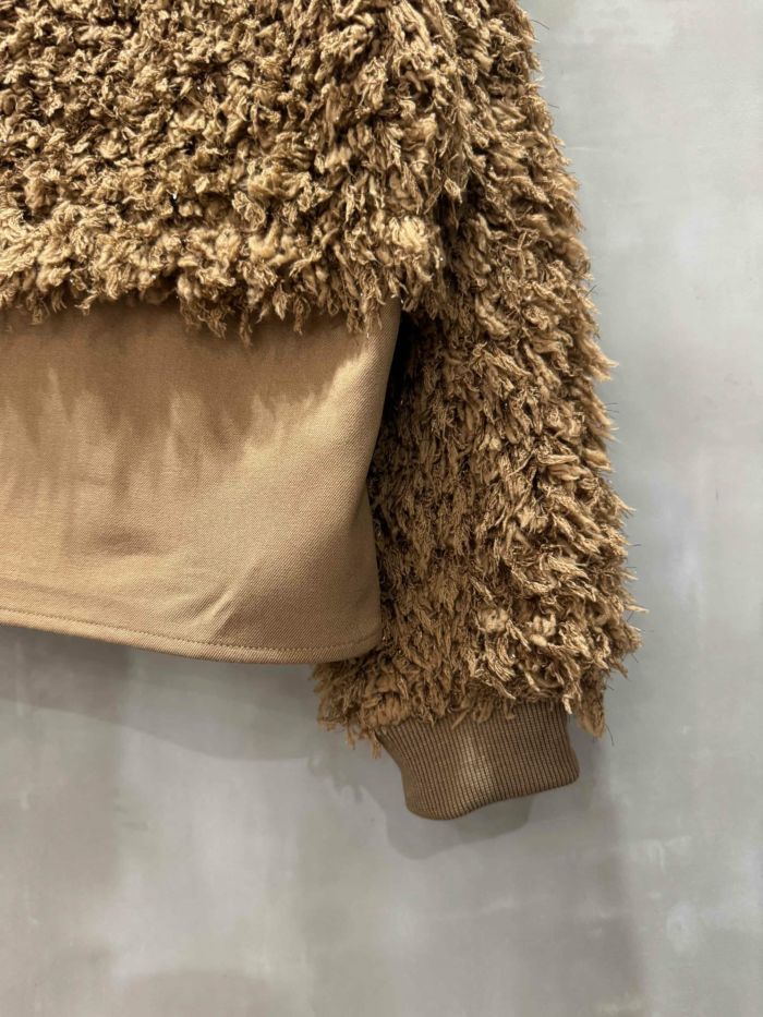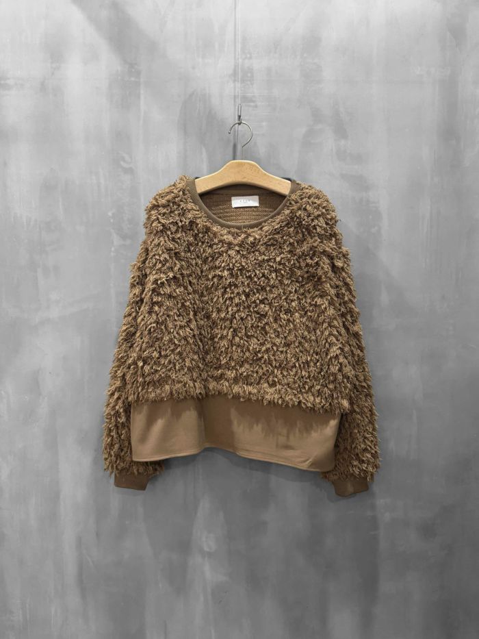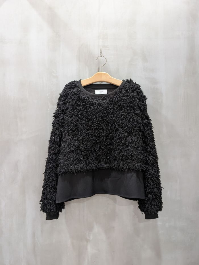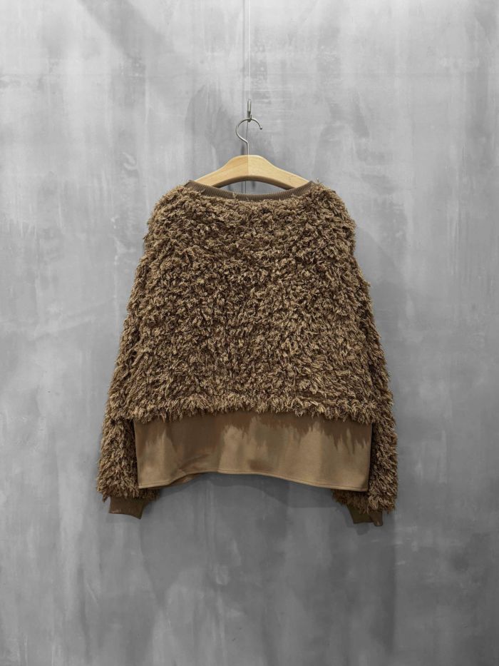 トレンド感のあるラメシャギーボアブラウス。 インパクトのあるボリュームシルエット。 メリハリのある切り替えでバランスの良い一枚です。