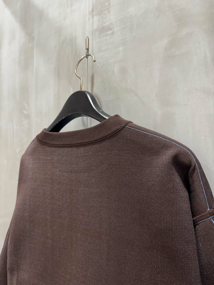 ゆったりとしたサイズ感はリラックスしたムードを演出しつつ、計算されたシルエットが体を華奢に見せてくれるのも魅力。袖や脇の配色シームがさりげないアクセントになり、シンプルながらもモードな雰囲気を漂わせます。ご家庭でのイージーケアが可能なので、デイリー使いにも最適です。