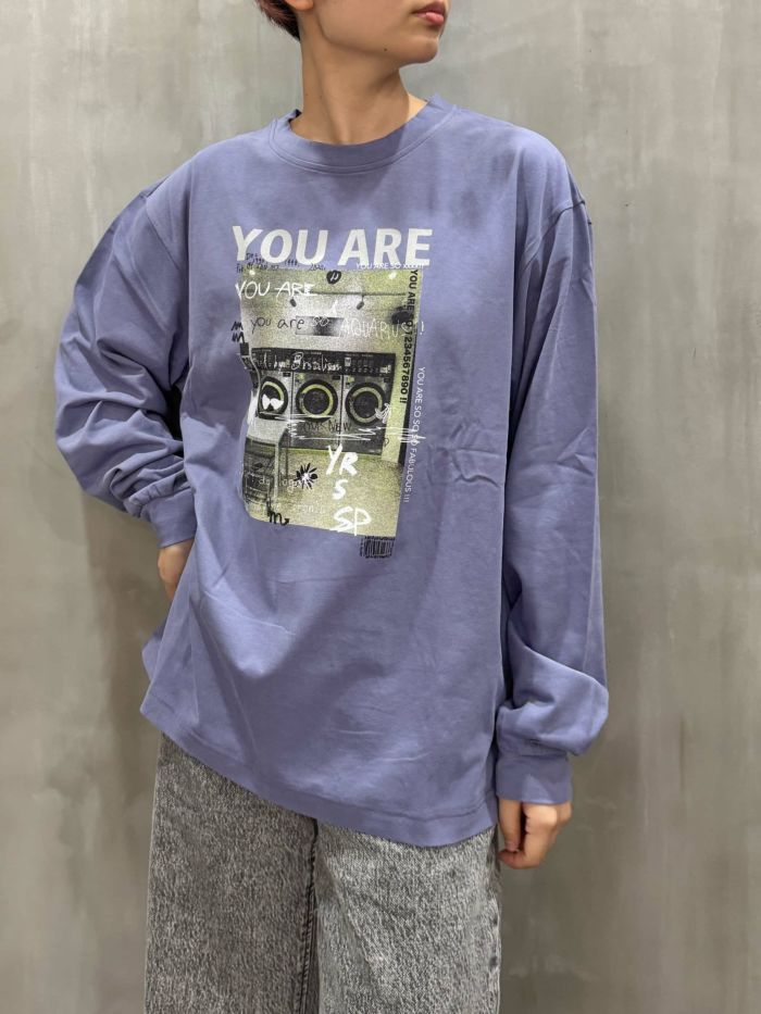 アート性とストリート感を融合させたグラフィックロングスリーブTシャツ。フロントに配された「YOU ARE」のタイポグラフィと、ヴィンテージライクなフォトコラージュプリントが印象的で、まるでアートピースのような存在感を放ちます。90年代カルチャーを感じさせるデザインは、トレンドのレトロムードを自然に取り入れたい方にもおすすめです。