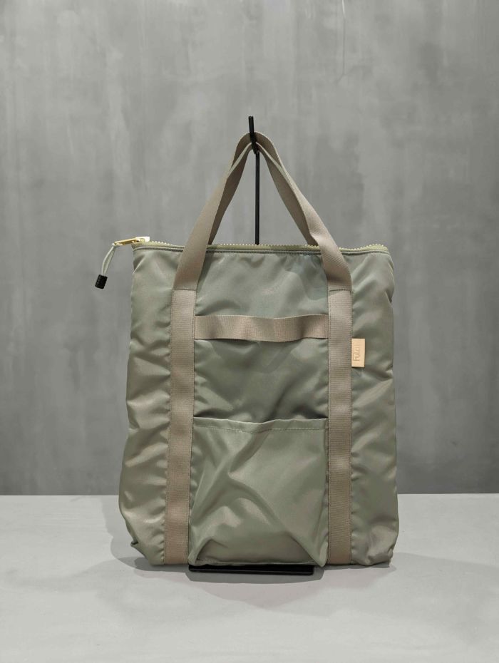 1stモデルのヘルメットバッグをイメージしながらデザインした、ミリタリーテイストのPC & etc トートバッグ。エルメス、グッチ、プラダなど名だたるブランドが採用するLIMONTA社製の高品質ナイロンを使用し、日常使いに最適なタフさと上品さを兼ね備えた仕上がりになっています。