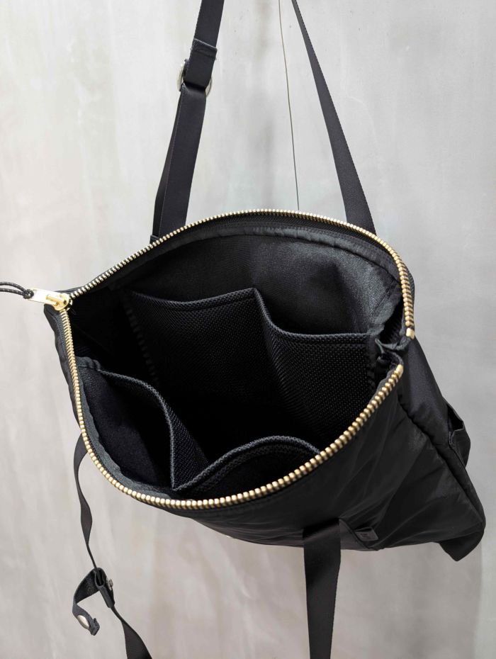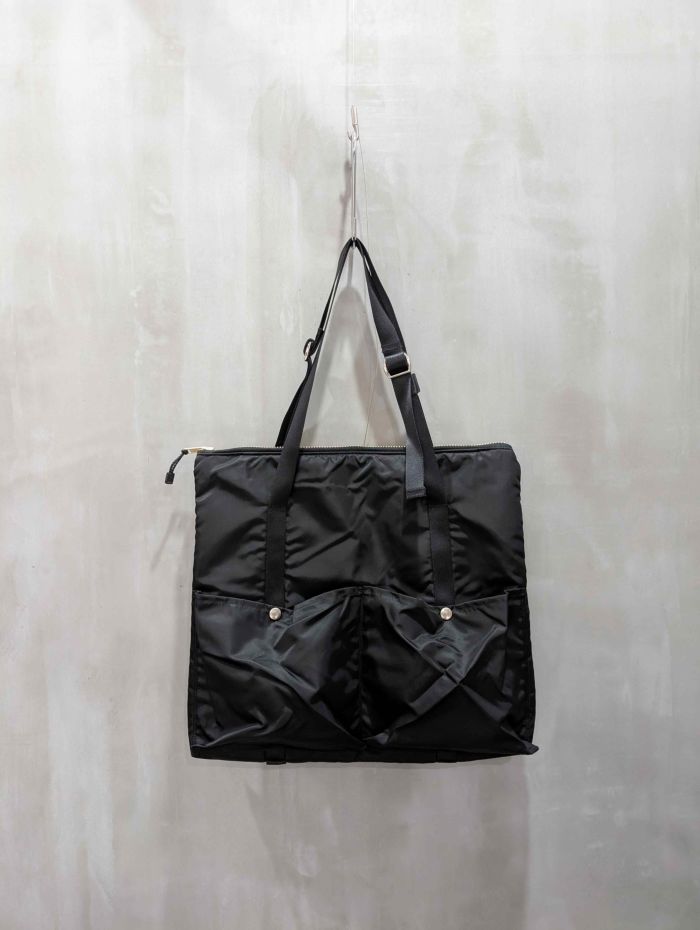 エルメス、グッチ、プラダなど名だたるブランドが採用する、世界的に評価の高いLIMONTA社のナイロン生地を使用し、ミリタリーチックなデザインに仕上げたトートバッグ。軽量ながらも程よいハリと膨らみ感を持たせ、肩にかけた際の安心感を考慮して作られています。